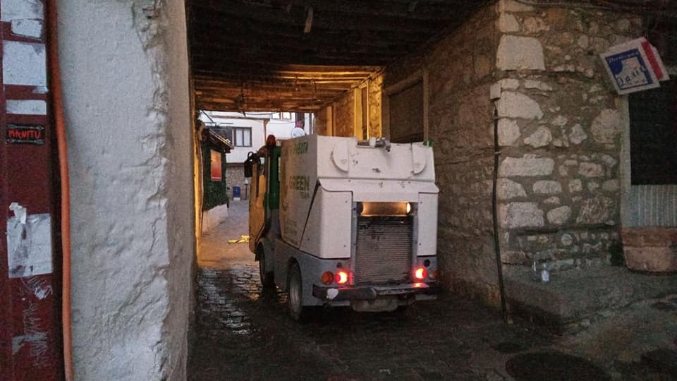 Заради специфичноста на теренот, тешката пристапност и тесните улици, чистењето било извршено со мала цистерна.