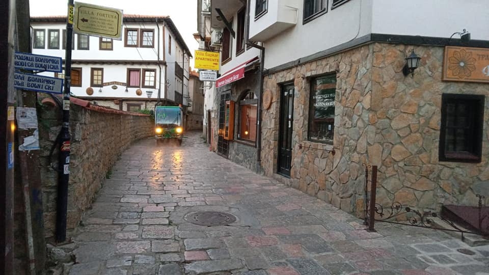 Со цел да се подигне нивото на јавна чистота, екипите на ЈП „Охридски Комуналец“ рано утринава спроведоа активности за миење на улиците во Стариот дел на градот.