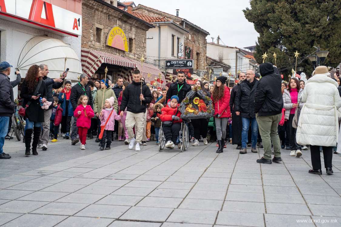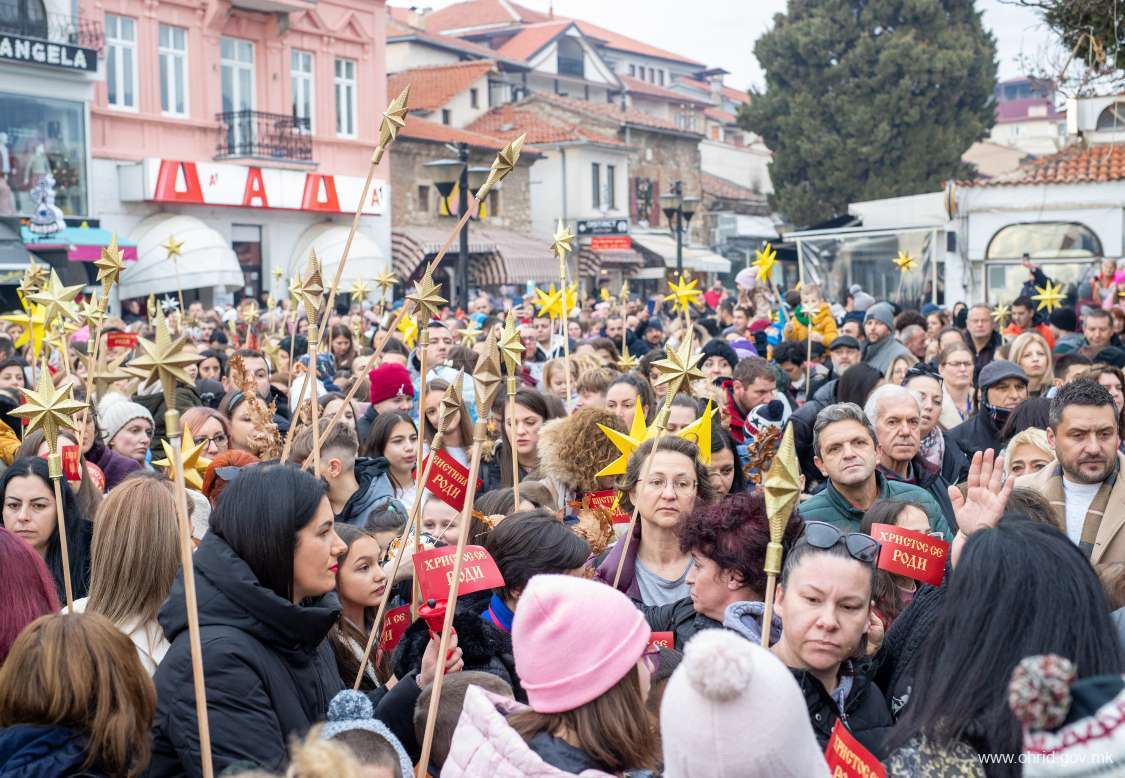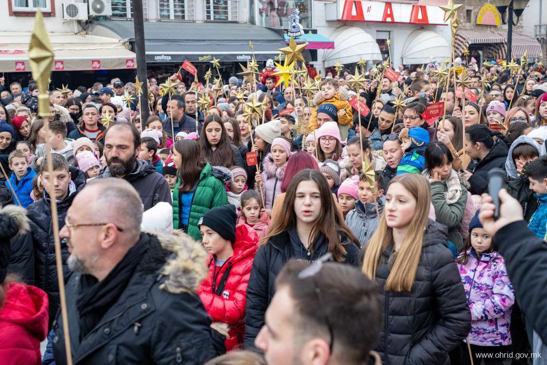 Со ѕвезди во рака, широка насмевка на лицата и видна возбуда пеејќи ја возобновената христијанска песна „Вечниот Бог“ околу 1000 охриѓанчиња кои беа дел од Бадниковата поворка претпладнево го најавија Христовото раѓање- Божиќ.