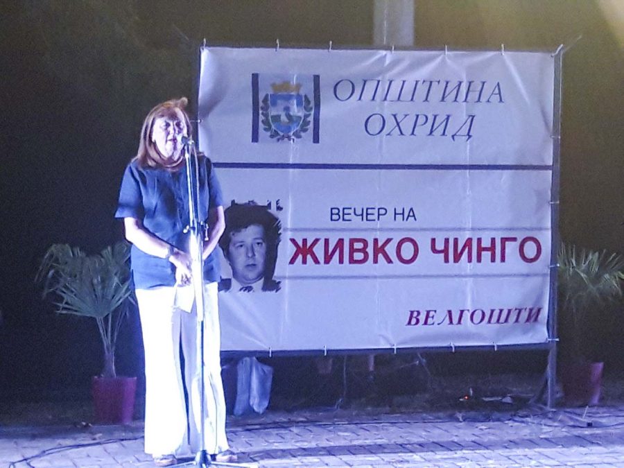 -Чувствувам огромна привилегија и гордост како човек и како историчар, оваа убава вечер да сум тука, на ова уникатно место, на овој прекрасен настан и тоа што имам можност да му оддадам почит, на еден од најмаркантните литературни дејци во нашата понова историја, нашиот голем и единствен Живко Чинго.