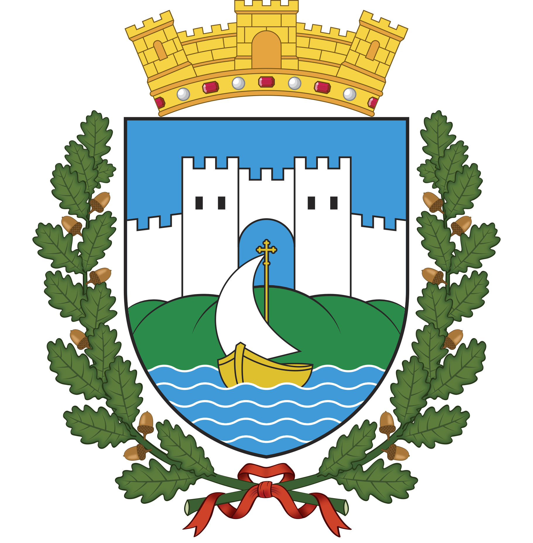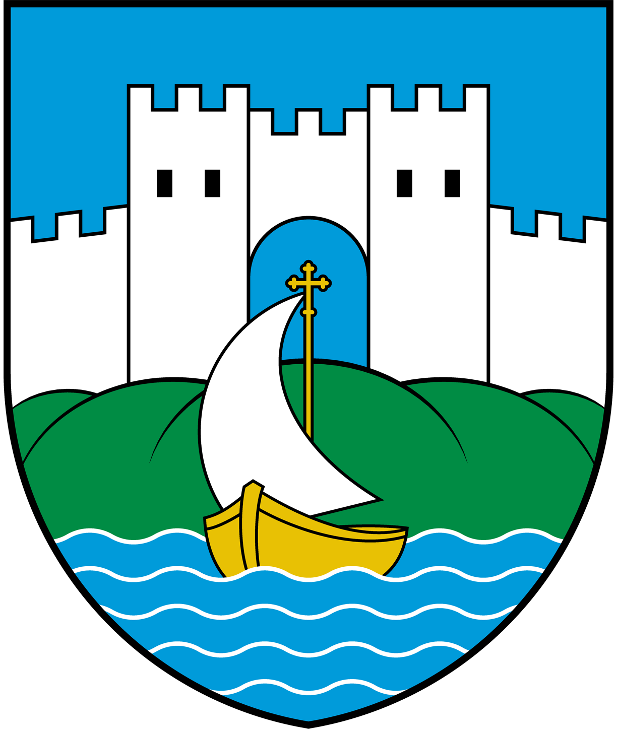 Малиот грб претставува основна хералдичка форма на која се наоѓа само штитот со хералдичката композиција. Основната хералдичка композиција се состои од следниве елементи: На сино поле се наоѓа зелен рид на кој е поставена сребрена ѕидина со две кули и со порта. Во подножјето на ридот е претставена вода во која се наоѓа златен едреник со сребрено едро и јарбол на едреникот, кој завршува во тролисен крст. Содржината на малиот грб е основа на сите три претстави.