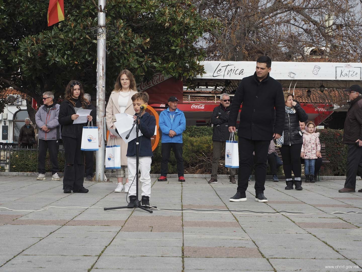 На пригодна свеченост која се одржа денеска на охридскиот плоштад, градоначалникот Кирил Пецаков ги додели наградите од Литературниот конкурс кој беше распишан по повод Свети Климент Охридски – Патрон на Охрид.