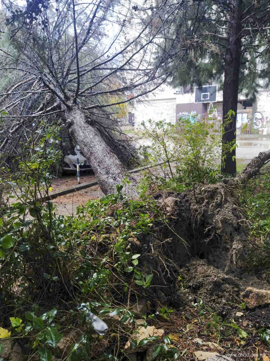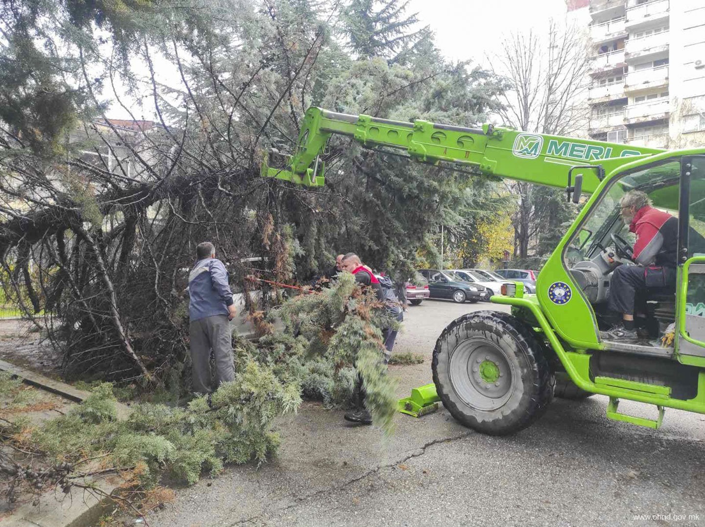 Покрај справувањето со поплавените површини, екипите на јавните претпријатија интервенираа и на неколку локации каде што силниот дожд и ветерот предизвикаа пад на дрвја, со што беа блокирани делови од јавните површини.