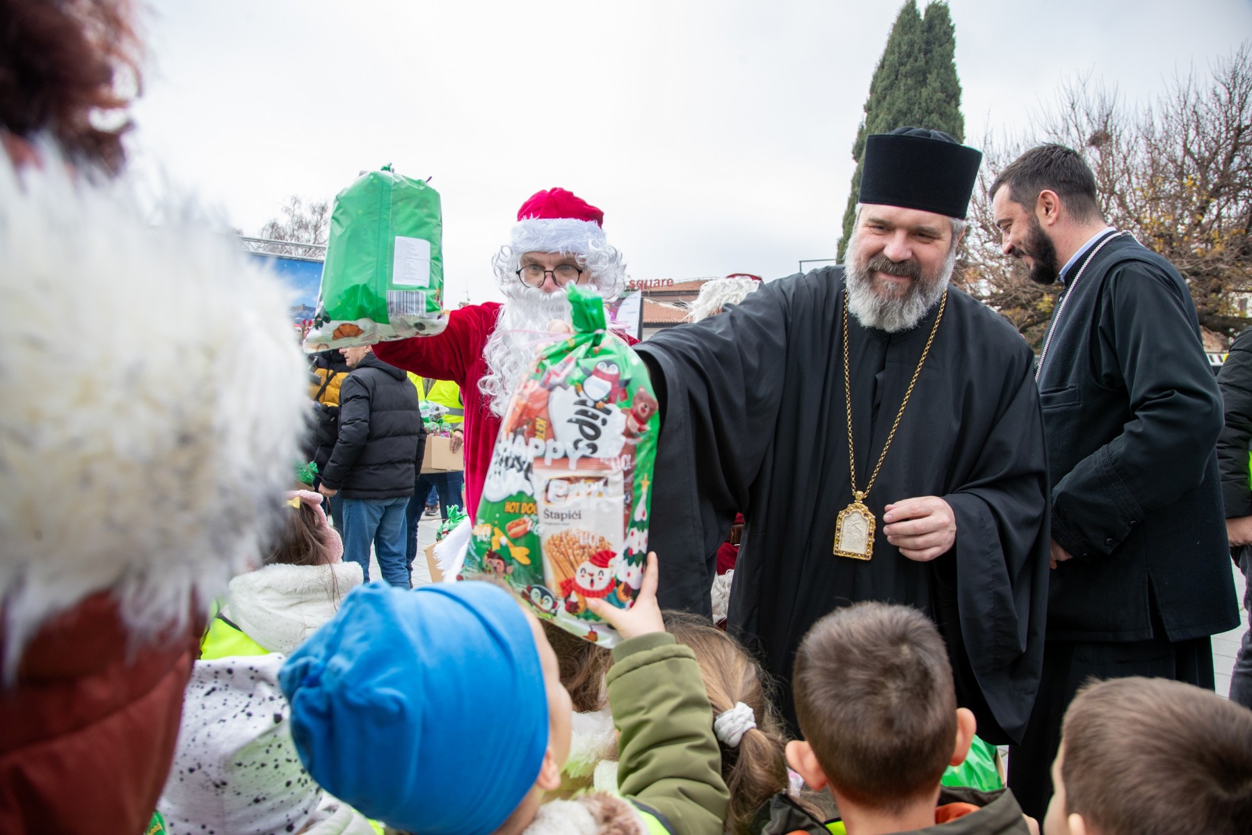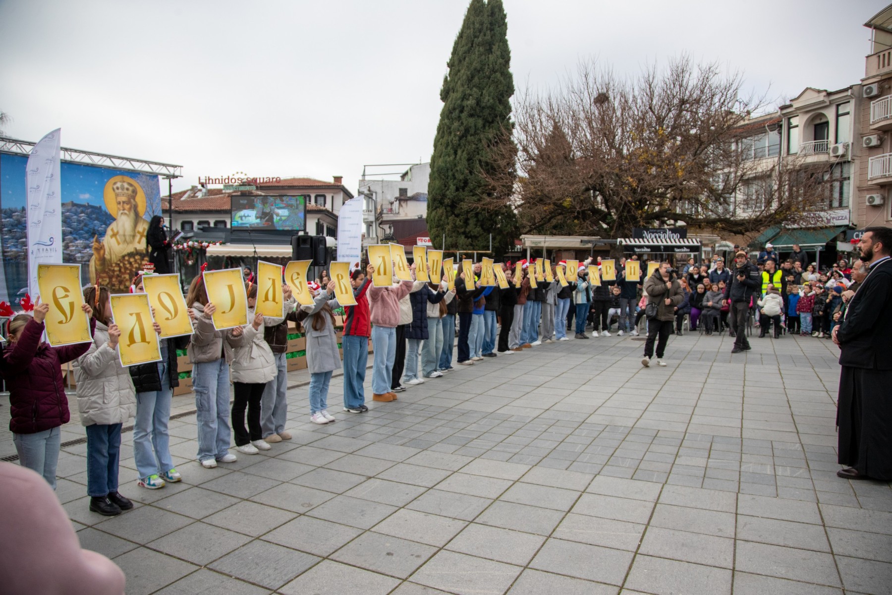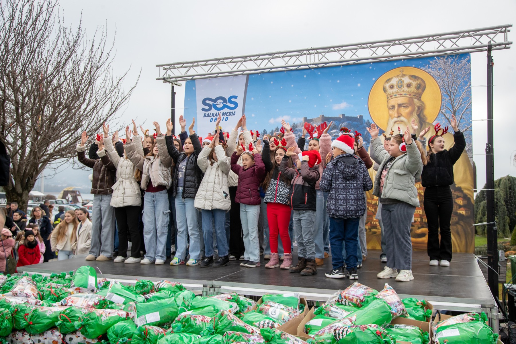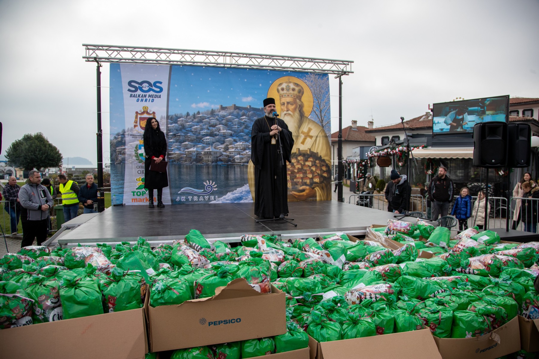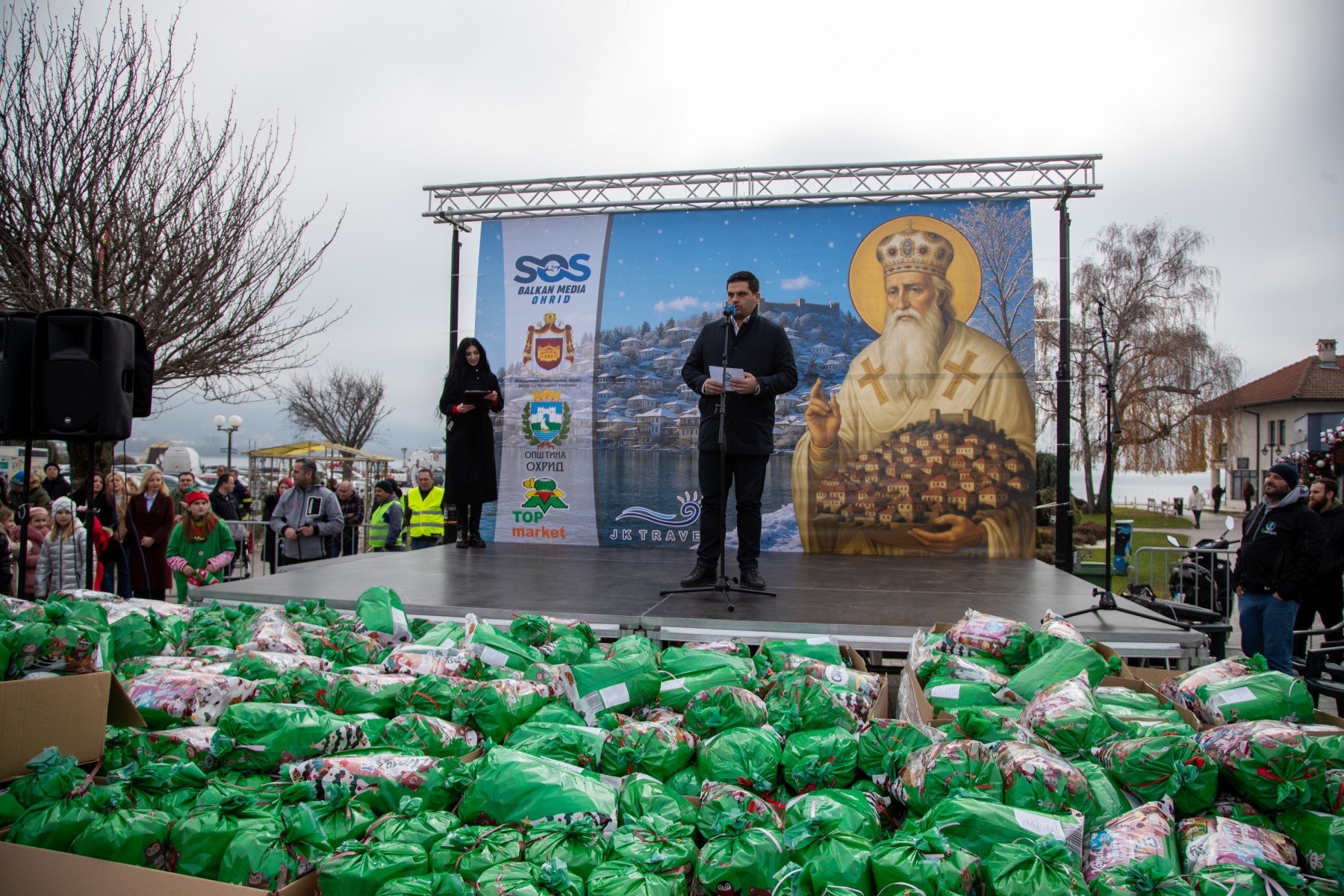 Над 3500 новогодишни пакетчиња беа поделени денеска на Градскиот плоштад „Свети Климент Охридски“ во рамки на големата хуманитарна манифестација организирана од Здружението за еднаква застапеност на лица со посебни потреби во медиумите „СОС Балкан Медиа“, со поддршка на Општина Охрид, Дебарско-Кичевската епархија и општествено одговорни компании.