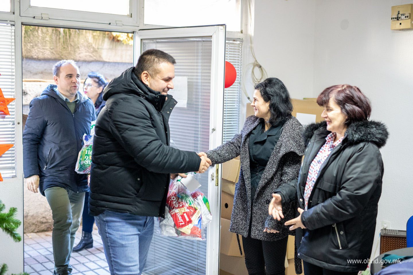 Во пресрет на новогодишните и божиќните празници, со цел да се сподели празнична радост и внимание, градоначалникот Кирил Пецаков, претседателот на Советот на Општина Охрид, Сашо Донев, секретарот на Општина Охрид, Александар Китески, и раководителот на секторот за образование Димитар Спасески денеска поделија вкупно 450 новогодишни пакетчиња.