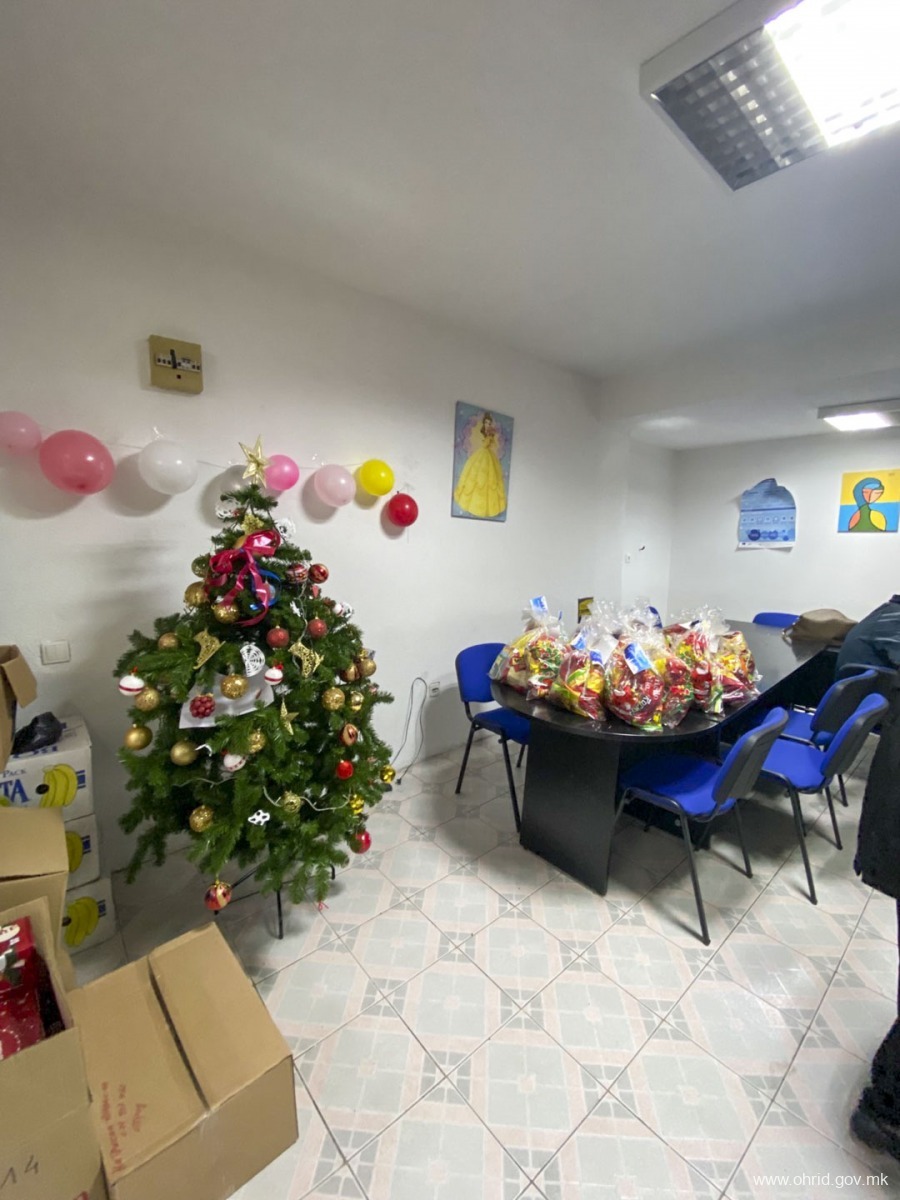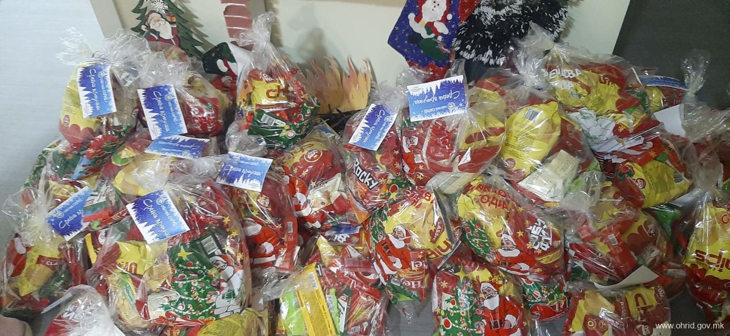 Новогодишни пакетчиња беа поделени во Дневниот центар „Зраци“, новоотворената игротека за деца со цребрална парализа „Радост“, посебната паралелка во ООУ „Свети Климент Охридски“ и Дневниот центар „Доброљубие“ во црквата „Свети Ѓорѓија“.  Новогодишни пакетчиња добија и дечињата при здружението „Ретко е да си редок“, дечињата во здружението „Тајните на моето срце“, дечињата од центрите на здружението „Во мојот свет“, како и на дечињата кои се лекуваат во специјалната болница за ортопедија и трауматологија „Свети Еразмо“ и во Општата Болница во Охрид.
