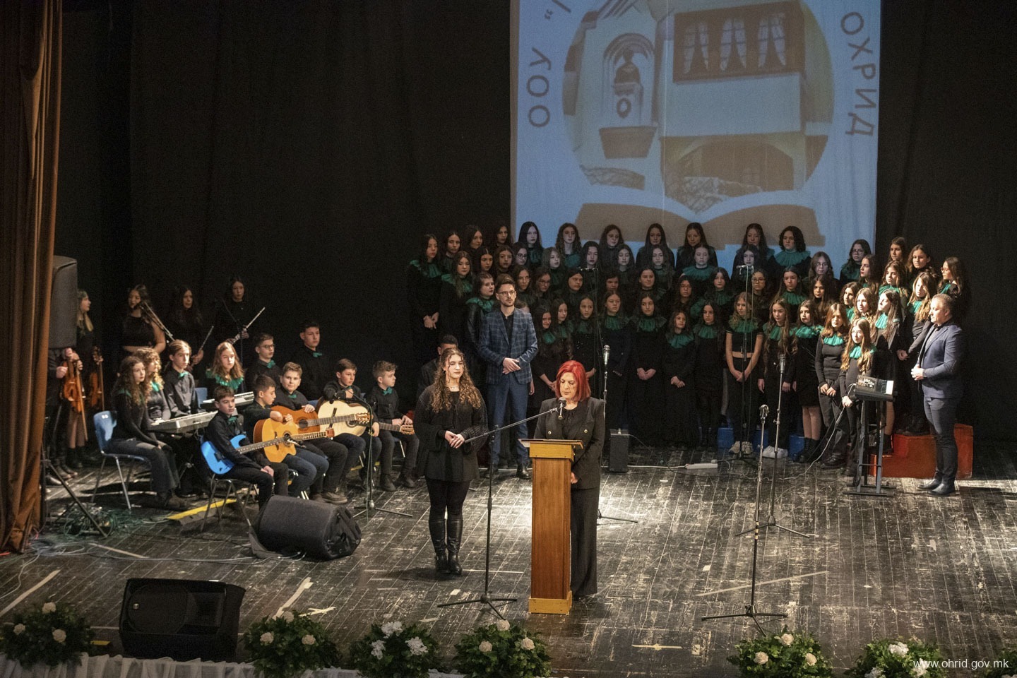 Пред бројните ученици, родители, граѓани и гости од збратимените училишта, свое обраќање имаше директорката Лилјана Ефтимовска. На свеченоста во името на Општина Охрид присуствуваше заменик градоначалникот Перчо Божиновски.
