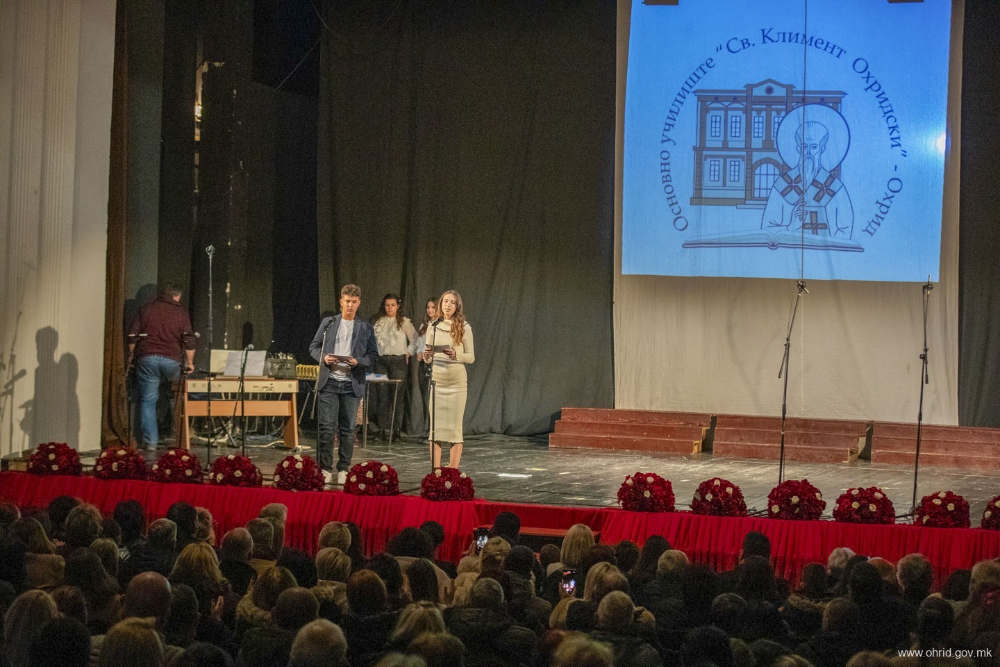 Со свечена програма, синоќа во Центарот за култура „Григор Прличев“, беше одбелжан празникот на ОУ “Свети Климент Охриски“. Годинашното чествување на празникот беше под мотото „Богатството наше – јазикот“. Пред бројните ученици, родители, граѓани и гости од соседна Србија, се обрати директорот на училиштето, Јордан Пуроски.