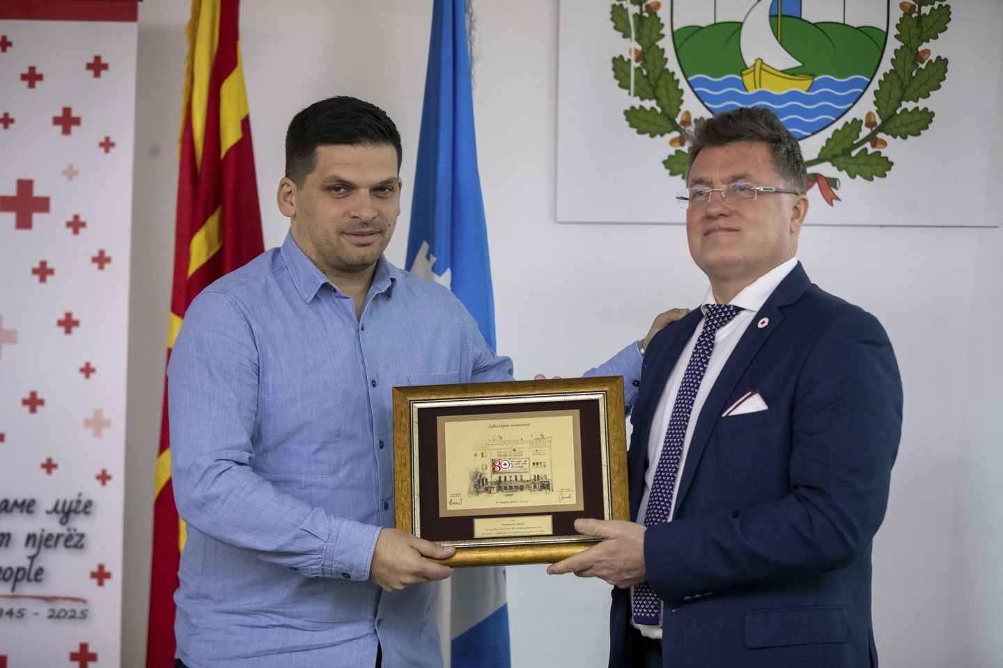 Во знак на благодарност за досегашната успешна соработка со Општина Охрид, од страна на Црвениот Крст, на градоначалникот, Кирил Пецаков му беше доделено јубилејно признание.