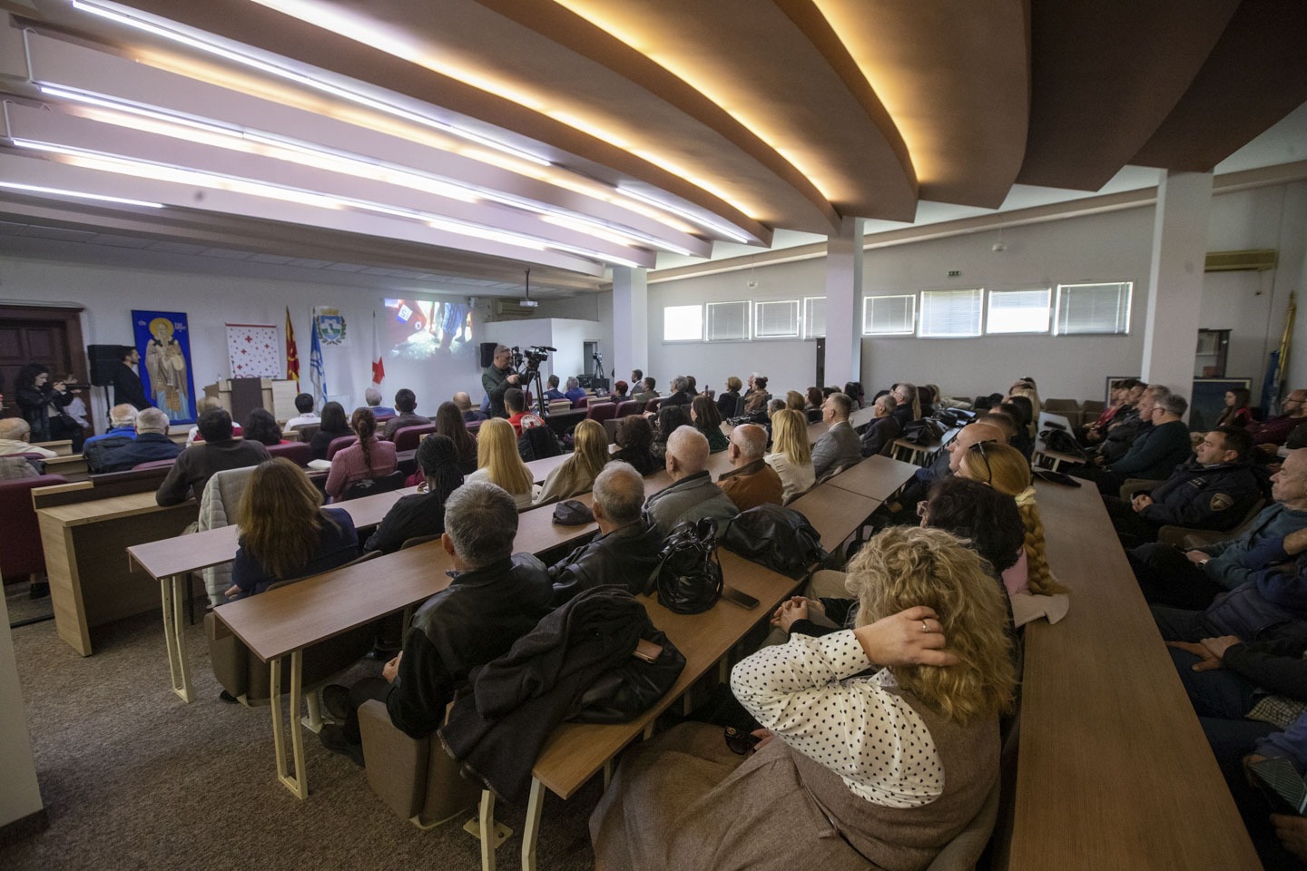 Свечениот настан беше отворен со видео презентација за историјата на функционирањето на Црвениот Крст во Република Македонија, а беа прикажани и видео материјали во кои беа претставени активностите и успешните проекти на оваа хуманитарна организација на државно ниво и на ниво на Општина Охрид. На настанот свое обраќање имаше претседателот на ОО Црвен Крст, Охрид, Сашо Точков и претседателот на Црвениот Крст на Република Македонија, Ромел Велев.