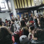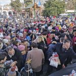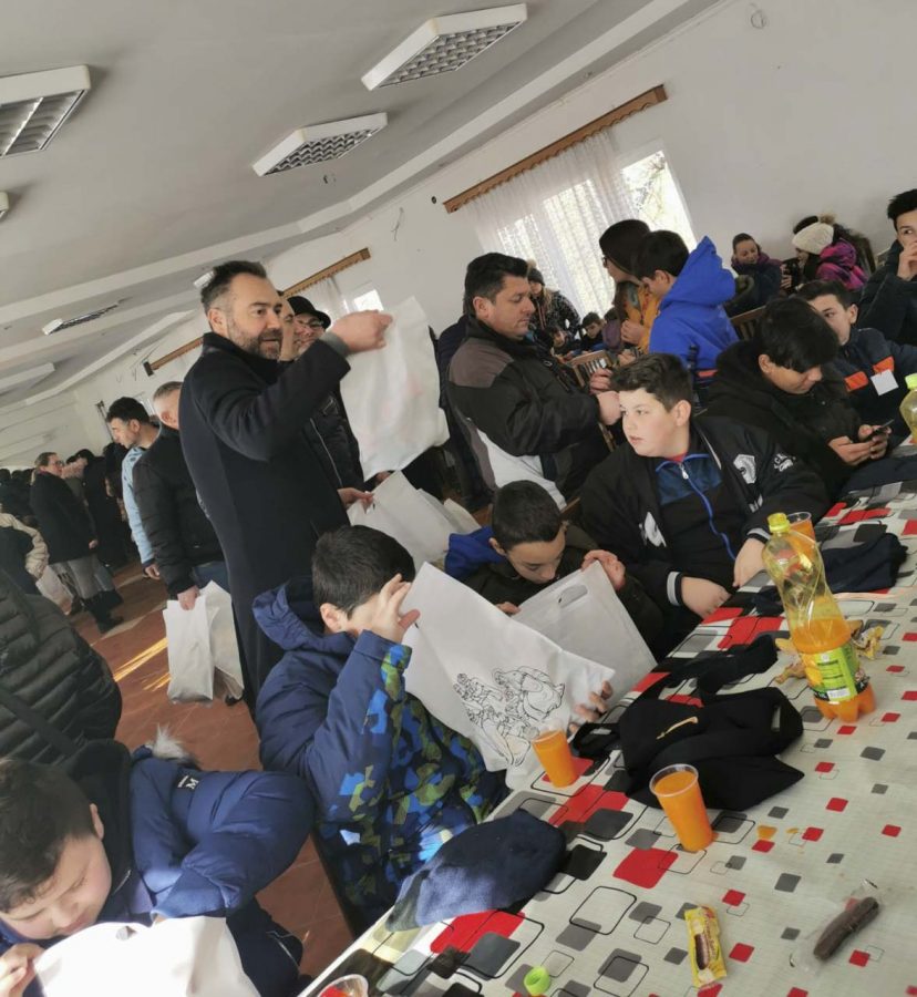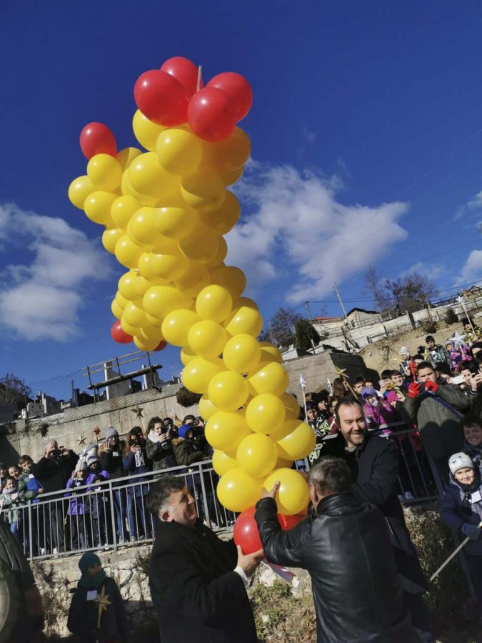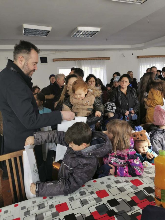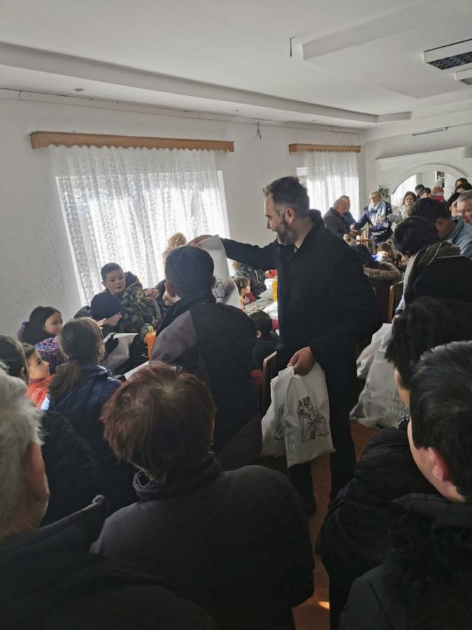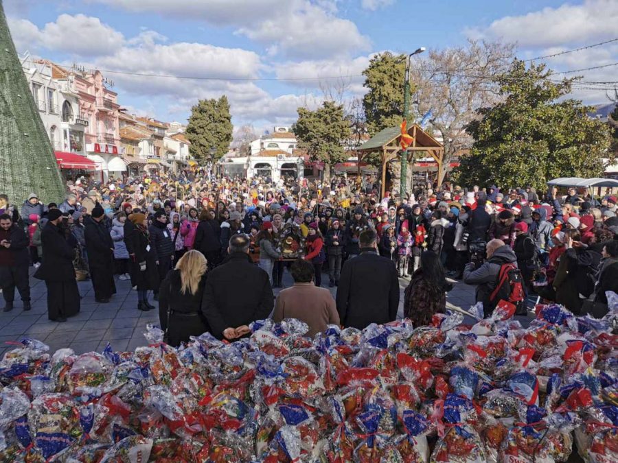 На плоштадот „Св. Климент Охридски“ кај божиќната пештера што е подарок од Бигорскиот манастир, Св. Јован Крстител, коледарчињата ги пречека градоначалникот Константин Георгиески кој ги дарува со божиќни пакетчиња.