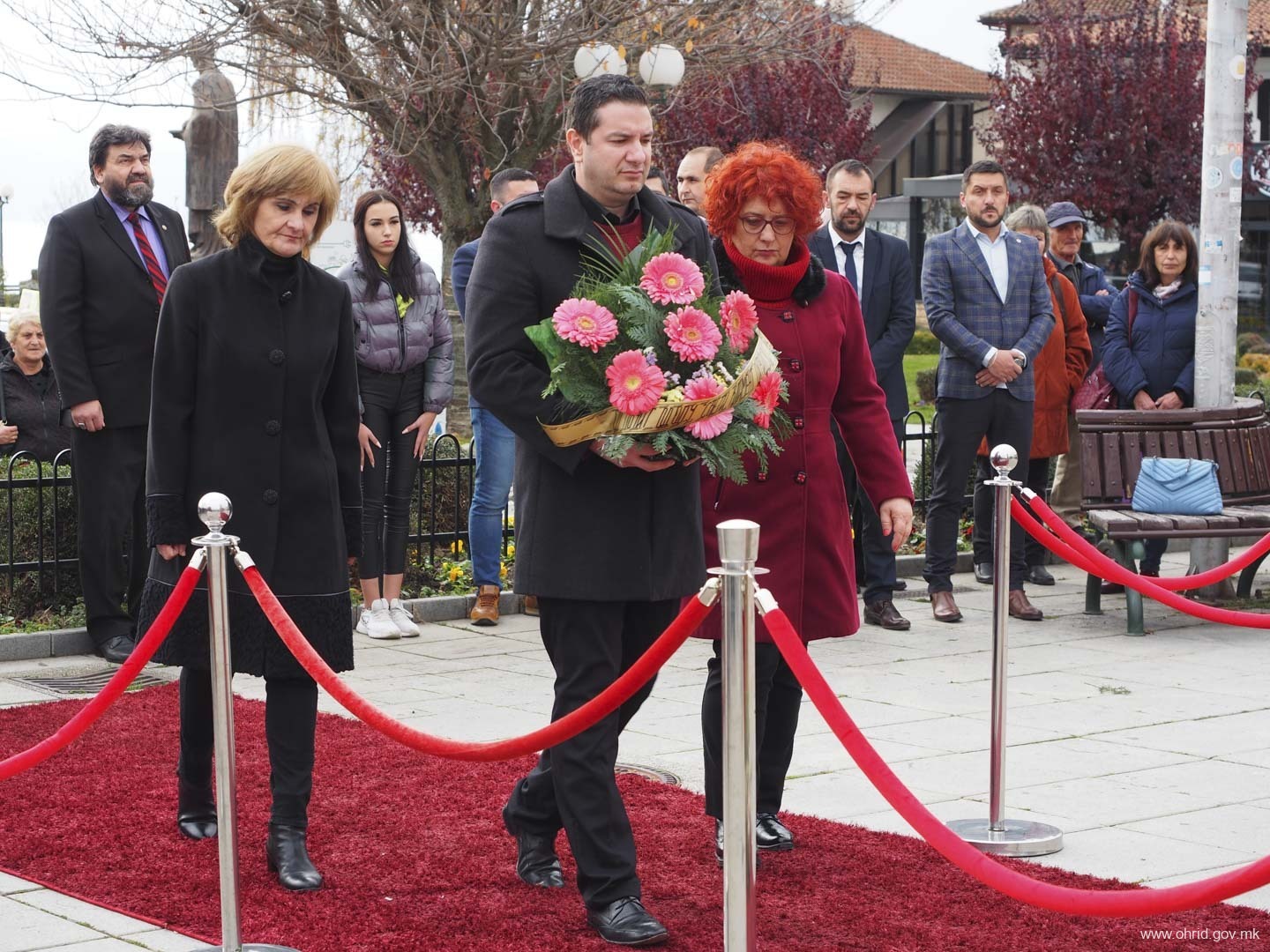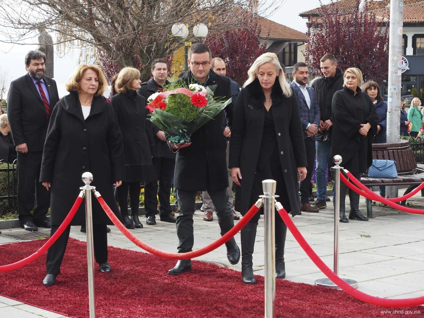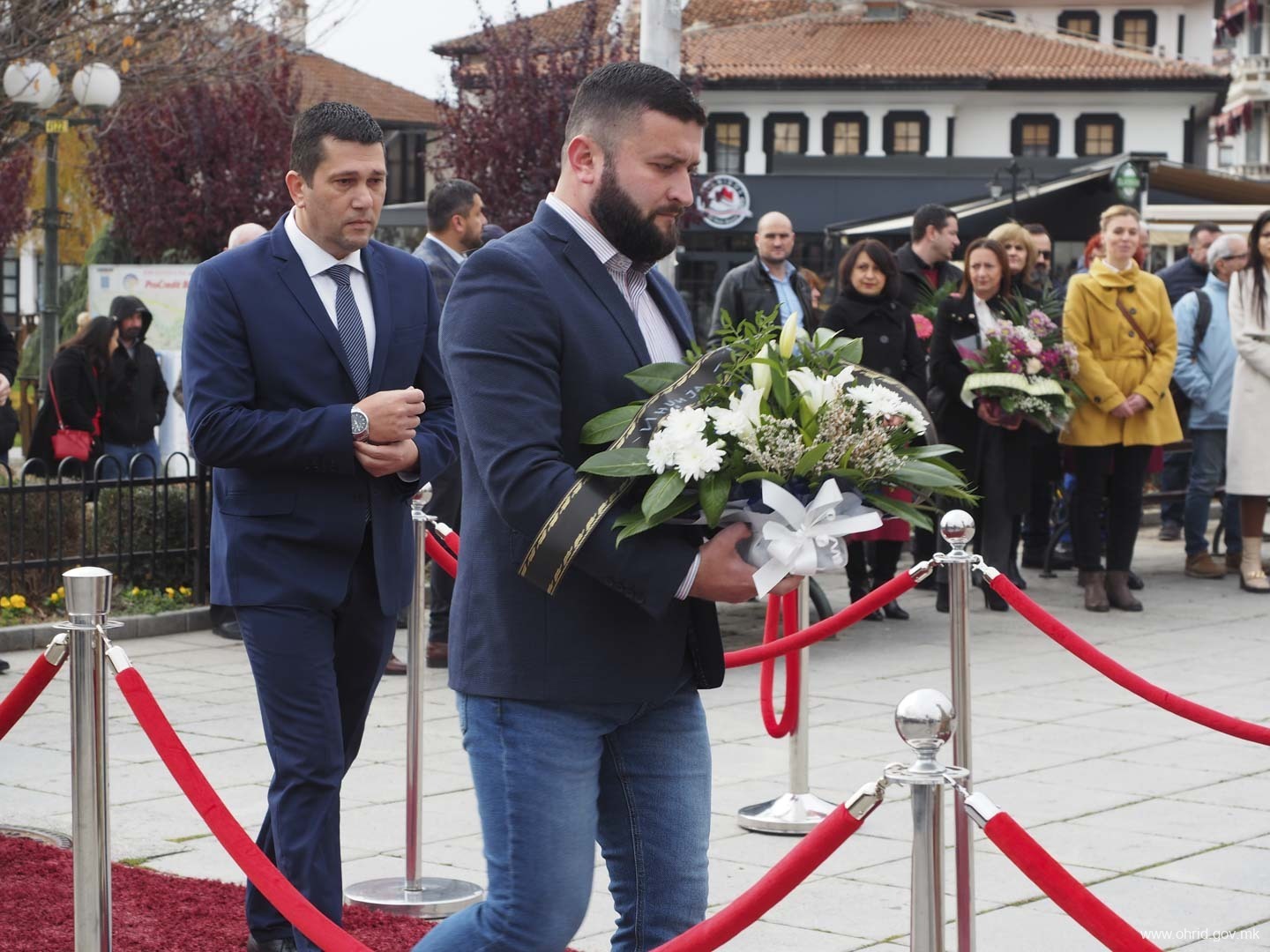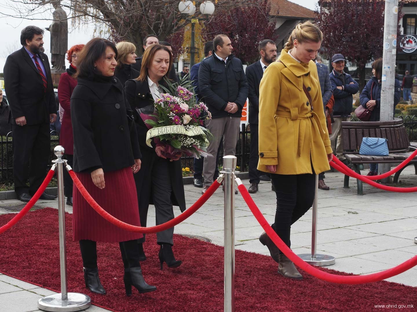 Денеска, во рамки на чествувањата посветени на „Св. Климент Охридски“ – Патрон на Охрид, делегација на Општина Охрид предводена од градоначалникот Кирил Пецаков положи свежо цвеќе пред спомен обележјето на Заштитникот Охридски Светителот „Климент Охридски“. Цвеќе положија и делегации од збратимените и пријателски градови, претставници од политичкиот и јавниот живот од градов меѓу кои и од   охридската гимназија и  битолскиот универзитет „Св. Климент Охридски“.