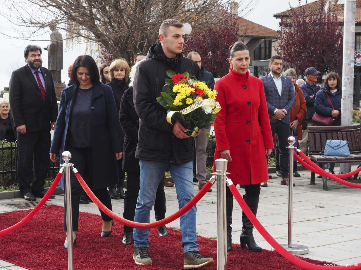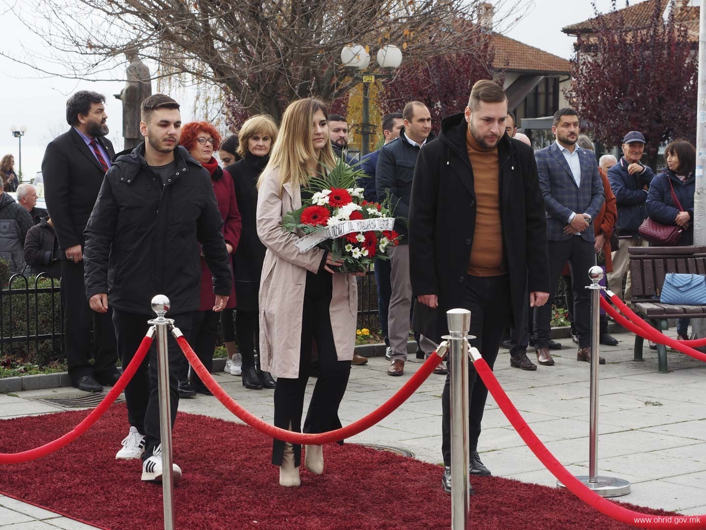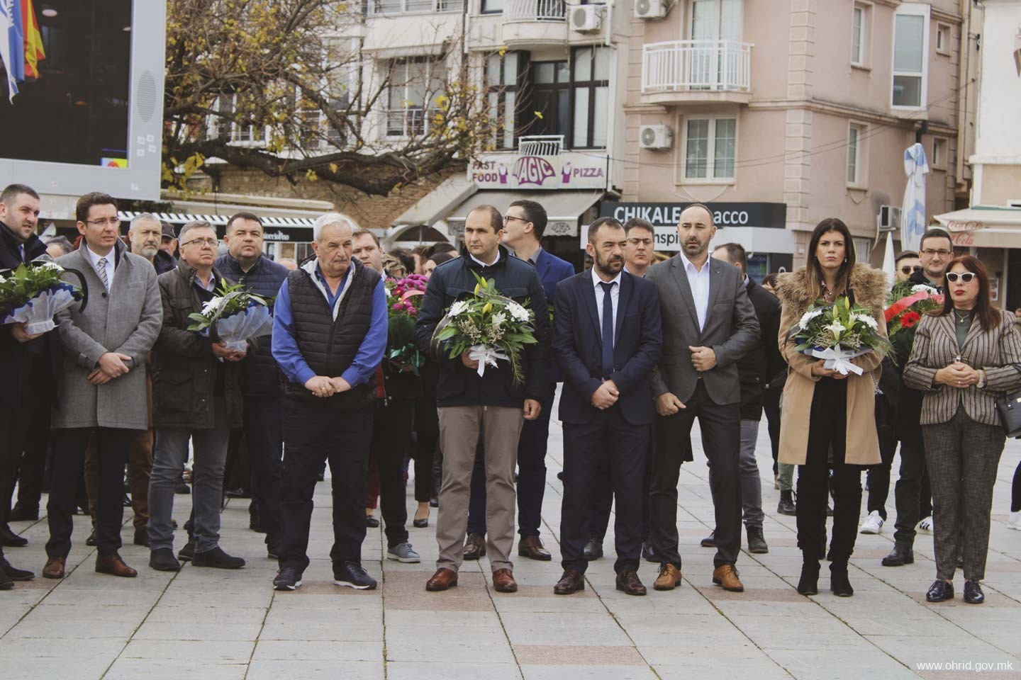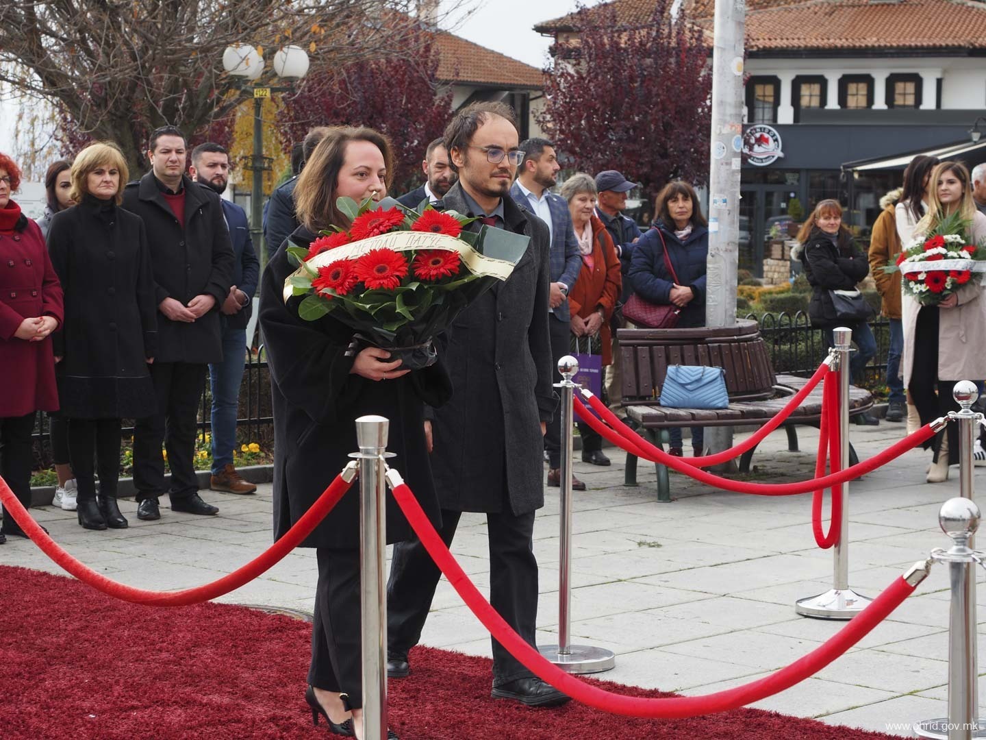 Денеска, во рамки на чествувањата посветени на „Св. Климент Охридски“ – Патрон на Охрид, делегација на Општина Охрид предводена од градоначалникот Кирил Пецаков положи свежо цвеќе пред спомен обележјето на Заштитникот Охридски Светителот „Климент Охридски“. Цвеќе положија и делегации од збратимените и пријателски градови, претставници од политичкиот и јавниот живот од градов меѓу кои и од   охридската гимназија и  битолскиот универзитет „Св. Климент Охридски“.