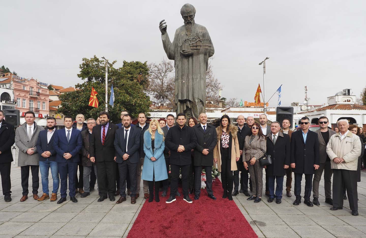 Денеска, во рамки на чествувањата посветени на „Св. Климент Охридски“ – Патрон на Охрид, делегација на Општина Охрид предводена од градоначалникот Кирил Пецаков положи свежо цвеќе пред спомен обележјето на Заштитникот Охридски Светителот „Климент Охридски“. Цвеќе положија и делегации од збратимените и пријателски градови, претставници од политичкиот и јавниот живот од градов меѓу кои и од охридската гимназија и битолскиот универзитет „Св. Климент Охридски“.