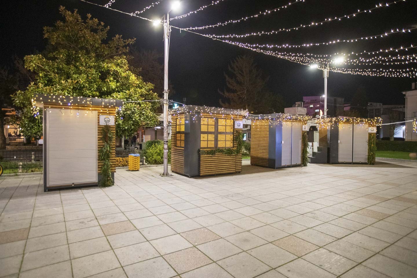 Куќарки со автентичен изглед, изработени од соодветен дрвен материјал поставени се на Градскиот плоштад во рамки на Новогодишниот базар.