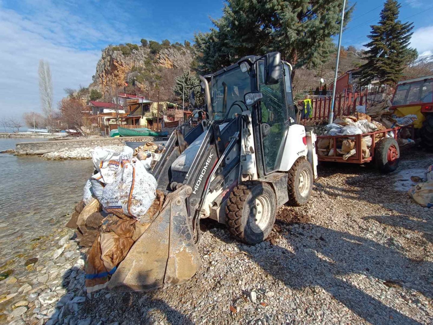 На ден 5.2.2022 од 8:00 часот екипите на ЈП ,,Охридски Комуналец” – Охрид се излезени на терен со вкупно 21 вработен и цела расположлива механизација со цел да се расчисти ,,ДЕПОНИЈАТА” од градежен шут во областа На Дол (с. Трпејца) на самиот брег на Охридското Езеро!