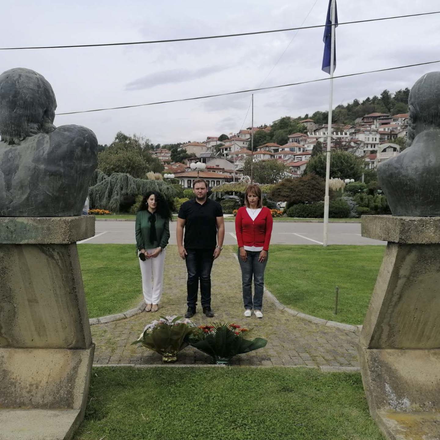 По повод празникот 8-ми Септември-Денот на независноста на Република Северна Македонија, делегација на Општина Охрид, составена од претседателката на Советот, Живка Ангелоска и заменик градоначалникот Ристе Николески, положија свежо цвеќе пред спомен обележјата на паднатите борци во паркот на градскиот плоштад.