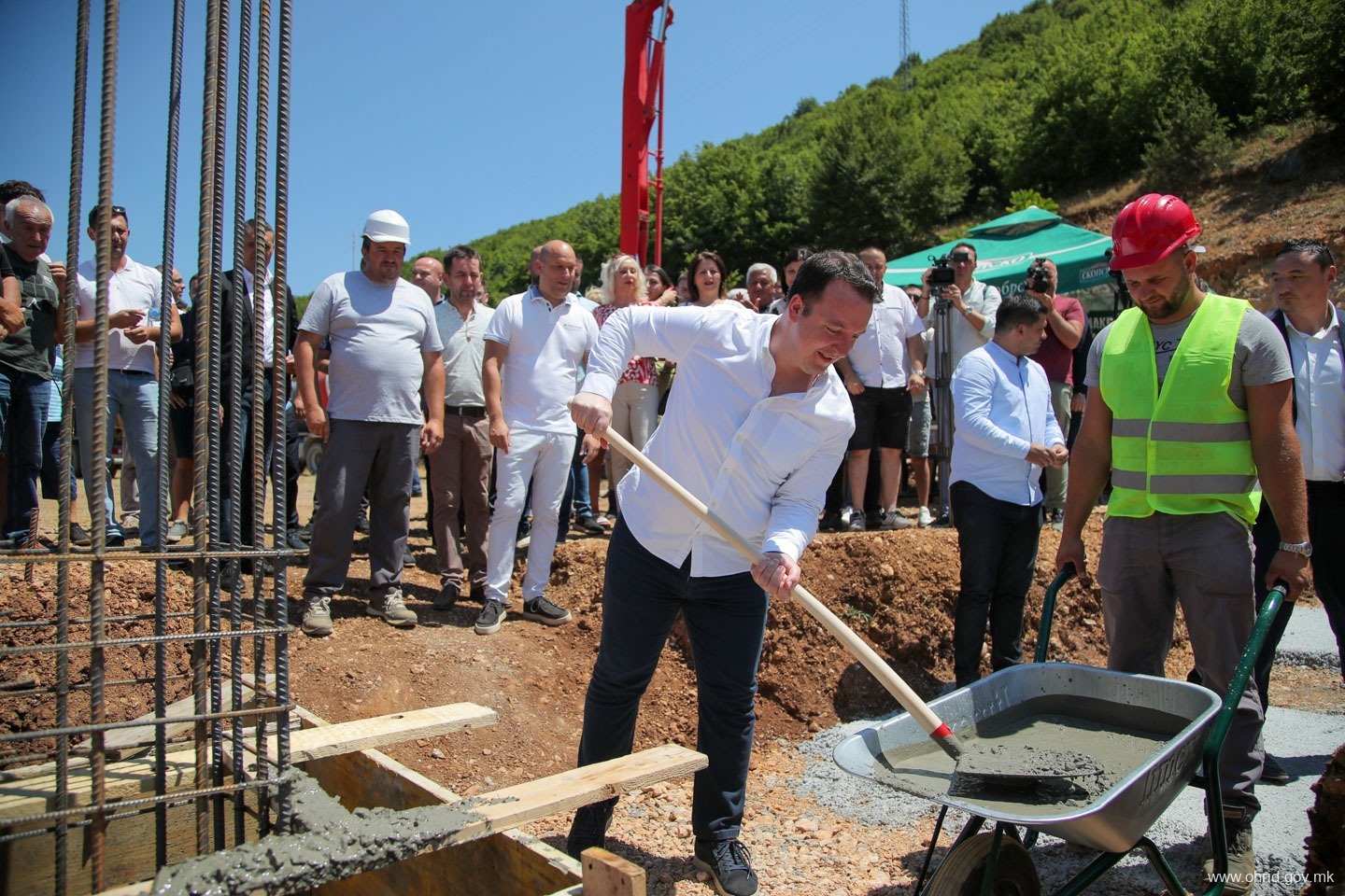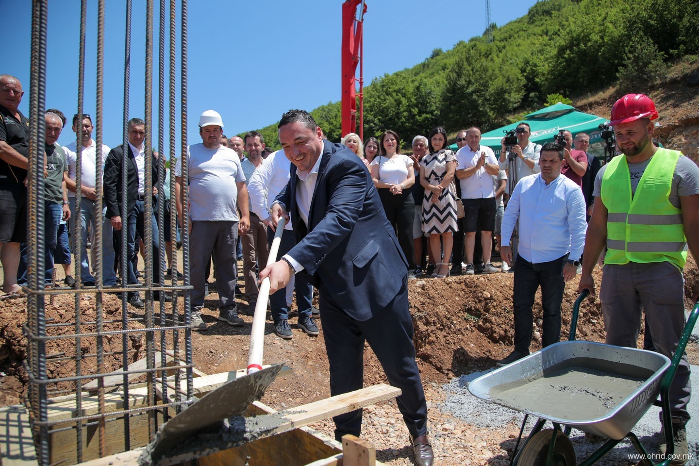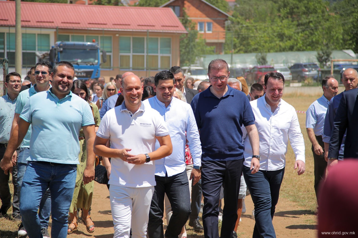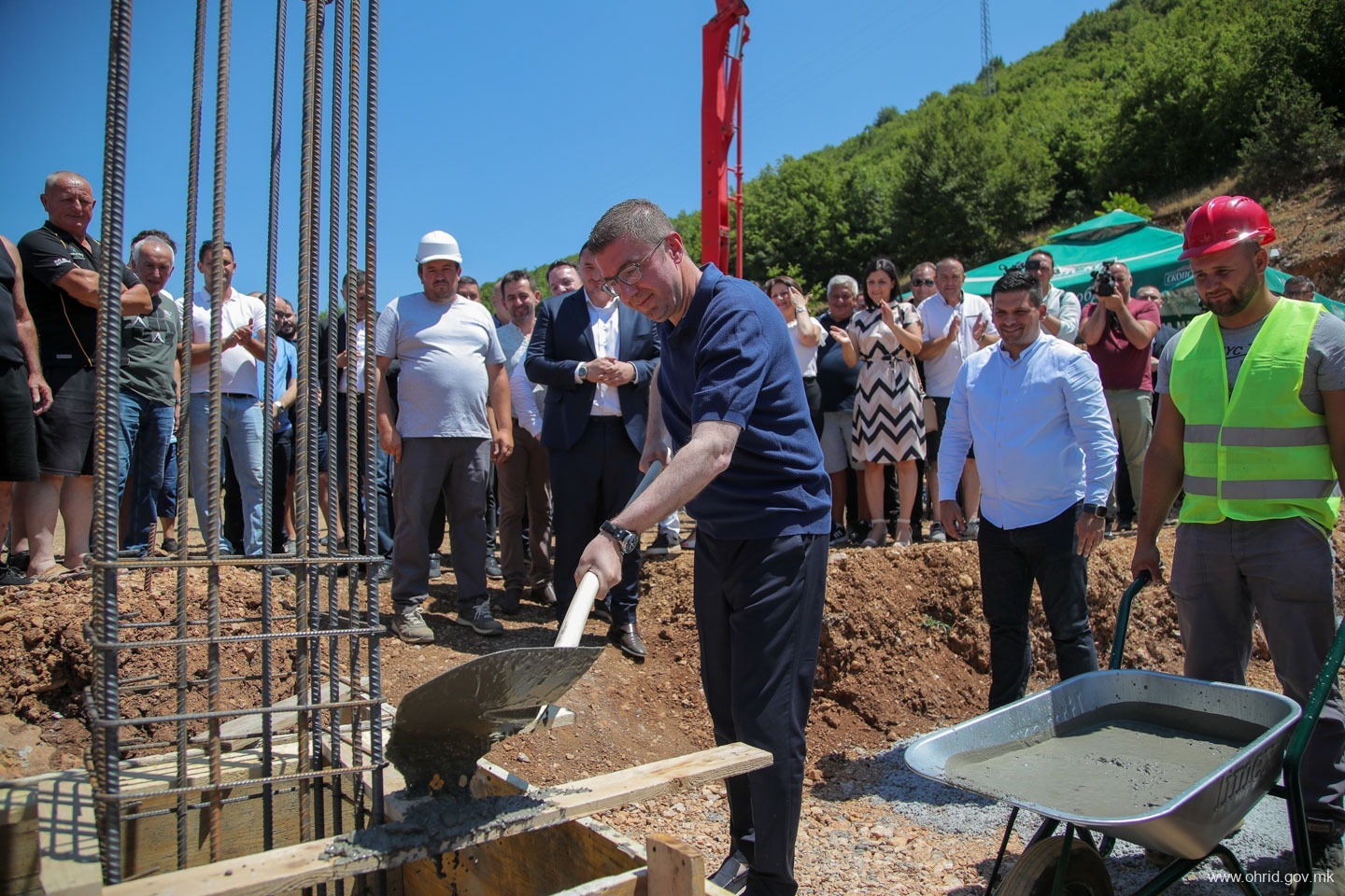 – Чест и задоволство е да се направи нешто ново и да се започне нешто ново посебно кога знаете дека тоа кое што го почнувате ќе значи подобри услови за работа, подобри услови за растење на тие дечиња кои што во ова основно училиште, овде го поминуваат оној прв образовен дел од својот живот. Заедно со градоначалникот, заедно со општината, заедно со надлежните во Владата, заедно со пратениците од овој регион и заедно со охриѓани го започнуваме овој проект, кој што многу значи. Јас сум навистина горд и среќен што сум дел од овој почеток, истакна премиерот Мицкоски.