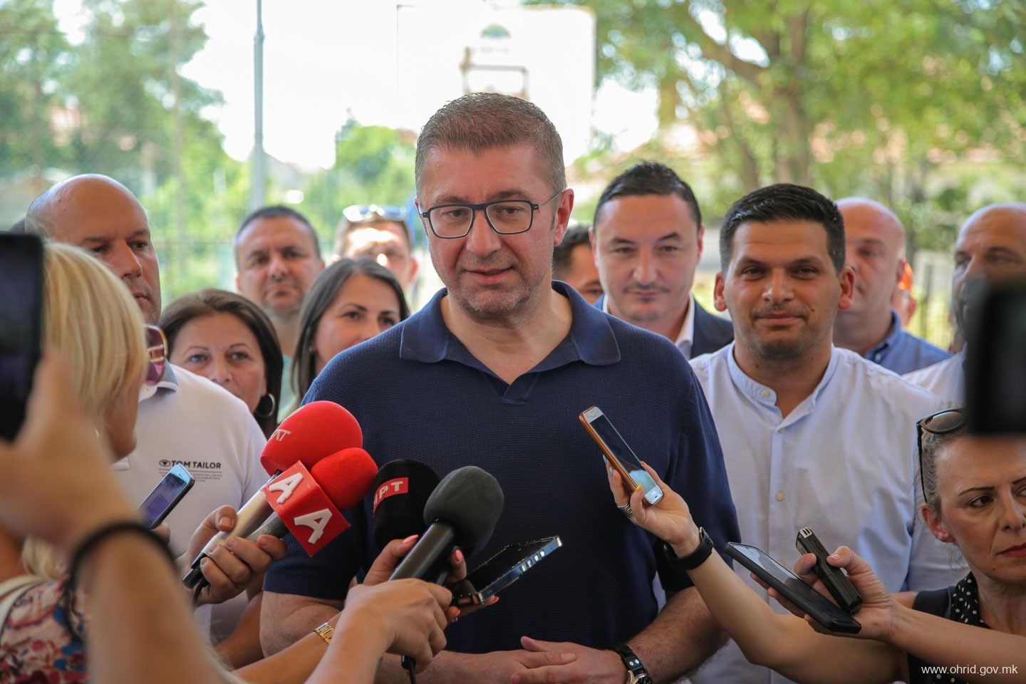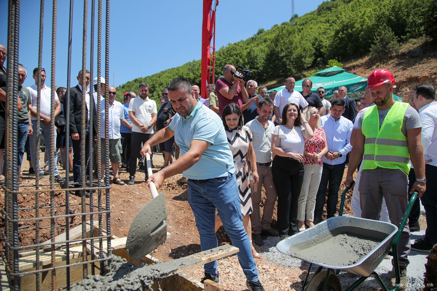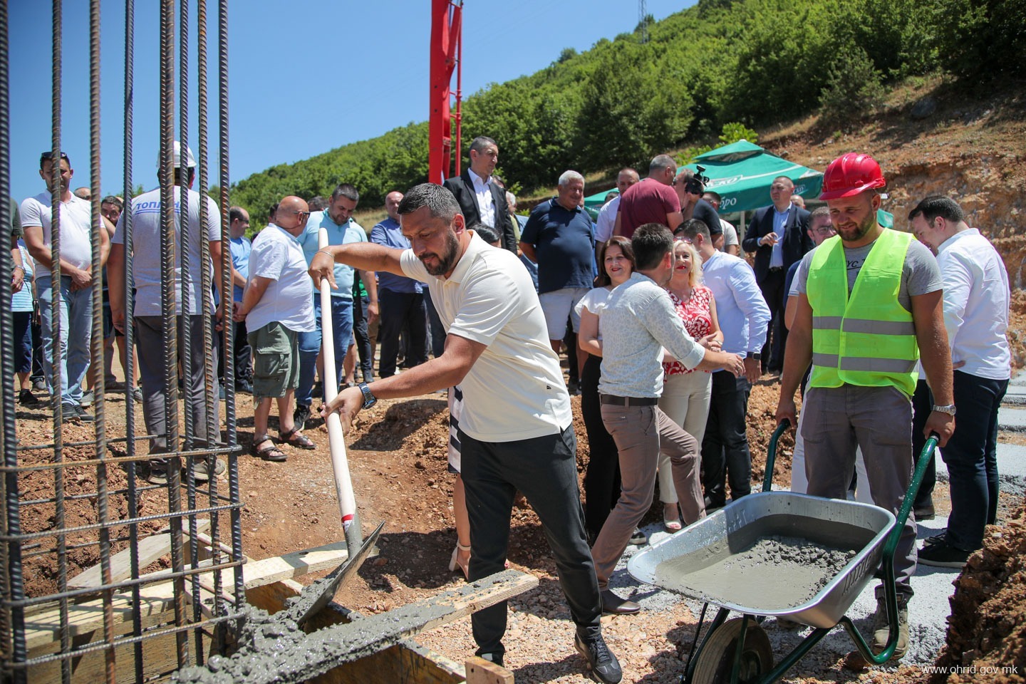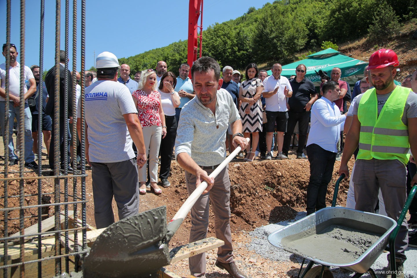 – Чест и задоволство е да се направи нешто ново и да се започне нешто ново посебно кога знаете дека тоа кое што го почнувате ќе значи подобри услови за работа, подобри услови за растење на тие дечиња кои што во ова основно училиште, овде го поминуваат оној прв образовен дел од својот живот. Заедно со градоначалникот, заедно со општината, заедно со надлежните во Владата, заедно со пратениците од овој регион и заедно со охриѓани го започнуваме овој проект, кој што многу значи. Јас сум навистина горд и среќен што сум дел од овој почеток, истакна премиерот Мицкоски.