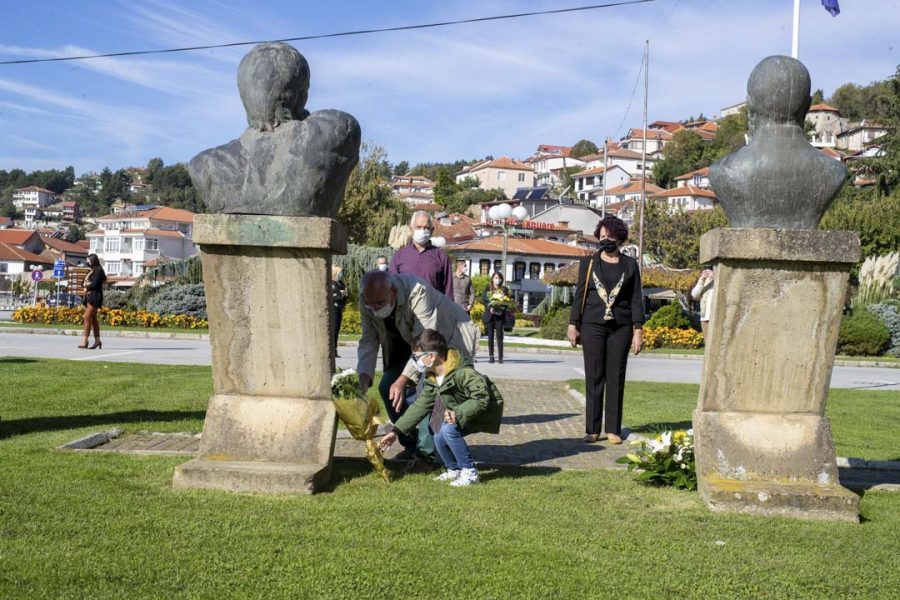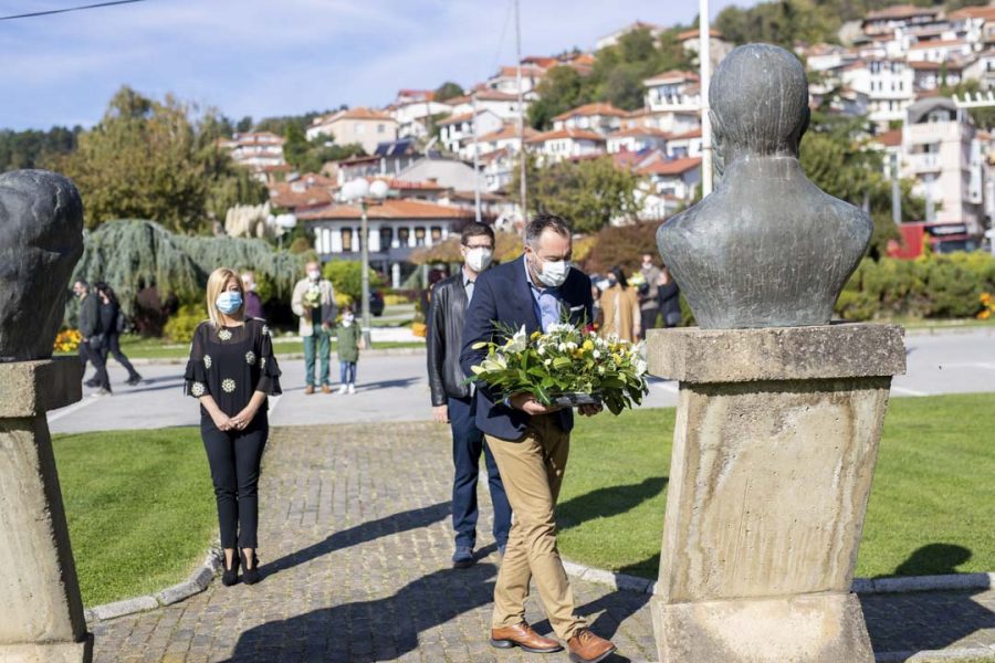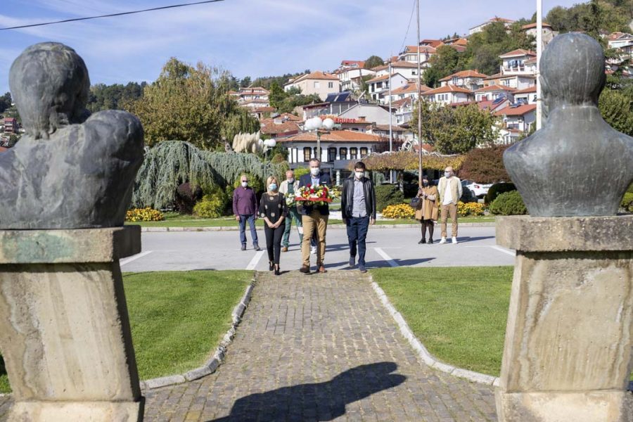 Делегација на Општина Охрид предводена од градоначалникот Константин Георгиески по повод 11 Октомври- Денот на Народното востание , положи свежо цвеќе пред спомен обележјата на паднатите борци во градски парк, во дворниот простор на Средното економско училиште „Св. Кирил и Методиј“ и во Основниот Суд како и во близина на Градските Гробишта.