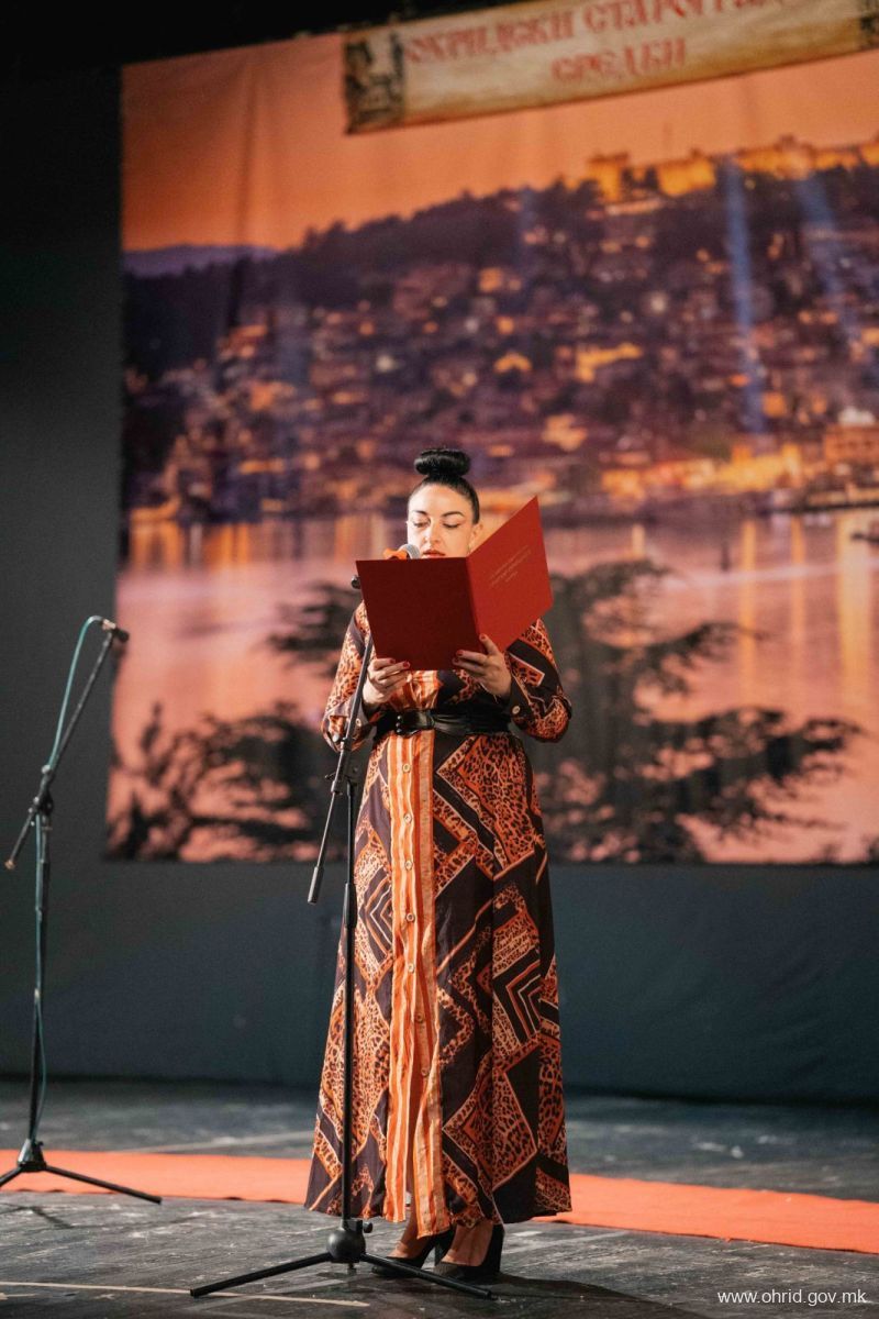 – Ценети организатори на Охридските староградски средби, почитувачи на убавата музика и градскиот мелеос, дами и господа.Дозволете да го изразам моето задоволство што Охрид по 37 пат е домаќин на овој значачаен културен настан. Преку него патуваме низ времето кога младите охриѓаники и возрасни госпоѓи уживале во серенадите кои под прозорец ги пееле познати музиканти поддржани од нивните сакани. За миг застануваме пред портите на куќата од Робевци и Уранија, шетаме по тесните сокачиња на Варош и не остануваме рамнодушни пред раскошот на охридските моми кои буделе восхит кај минувачите на градското корзо. Чекориме низ времето по холот во хотел „Палас„ или низ некогашните хотели на ПТТ и „Парк“….Охридските Строградски Средби се можеби најпрепознатливиот и највпечатливиот културен белег на нашиот народ, кој низ песната ги изразувал своите радости, тага, мечти и тешкотии. Вечерва 120 те учесници од 7 културно уметнички друштва од Охрид, Прилеп, Кичево, Скопје, Струга, Штип и Дебрца со својот настап ќе го потврдат непресушниот талент на македонскиот народ низ различни културни форми да се самопотврдува и да биде препознатлив на светската културна мапа. Охридските Староградски Средби се можеби најзначајната алка во културниот гердан на градов зошто преку нив се изразува нашиот талент и уметничко битисување препознатливо и за другите култури и народи. Дозволете ми во името на Општина Охрид да ви посакам пријатна и распеана вечер, а тебе драга публико ти посакувам да понесеш позитивни впечатоци и до в година да бидеш уште побројна- рече Крстеска.