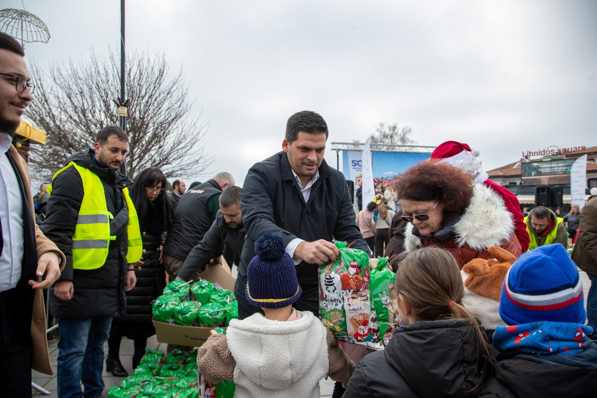 Над 3500 новогодишни пакетчиња беа поделени денеска на Градскиот плоштад „Свети Климент Охридски“ во рамки на големата хуманитарна манифестација организирана од Здружението за еднаква застапеност на лица со посебни потреби...