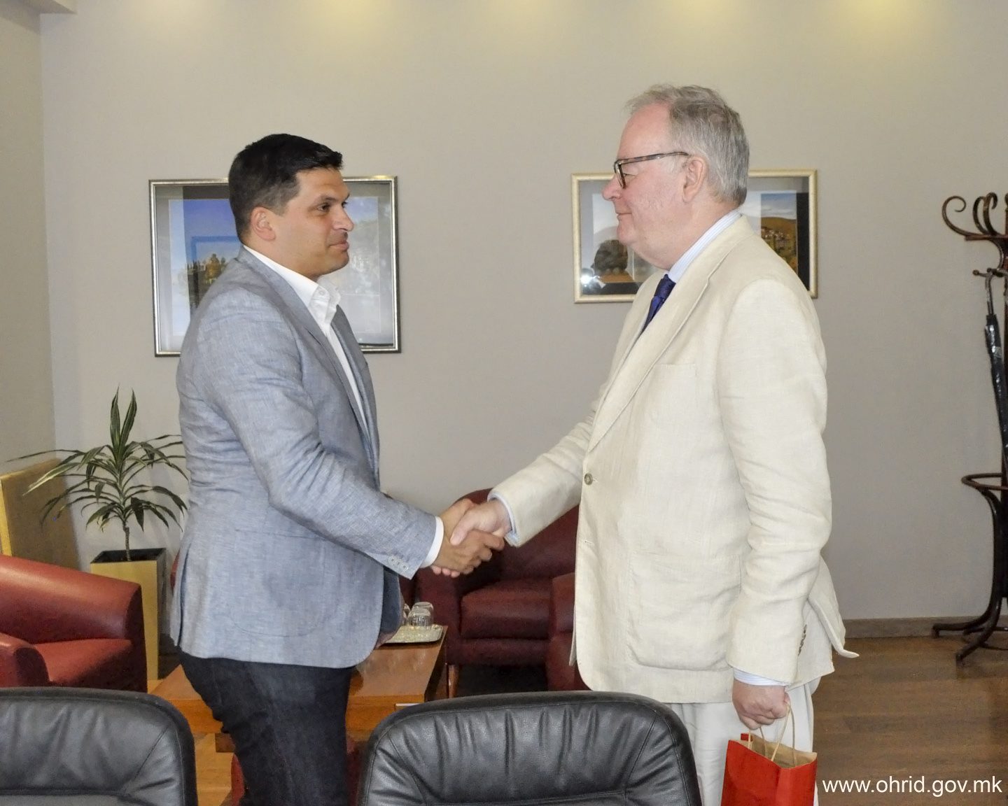 Градоначалникот на Охрид, Кирил Пецаков денеска во својот кабинет го прими амбасадорот на Кралството Шпанија Н.Е. Рафаел Сориано Ортиз. На работната средба двете страни разменија мислења околу туристичката соработка меѓу...