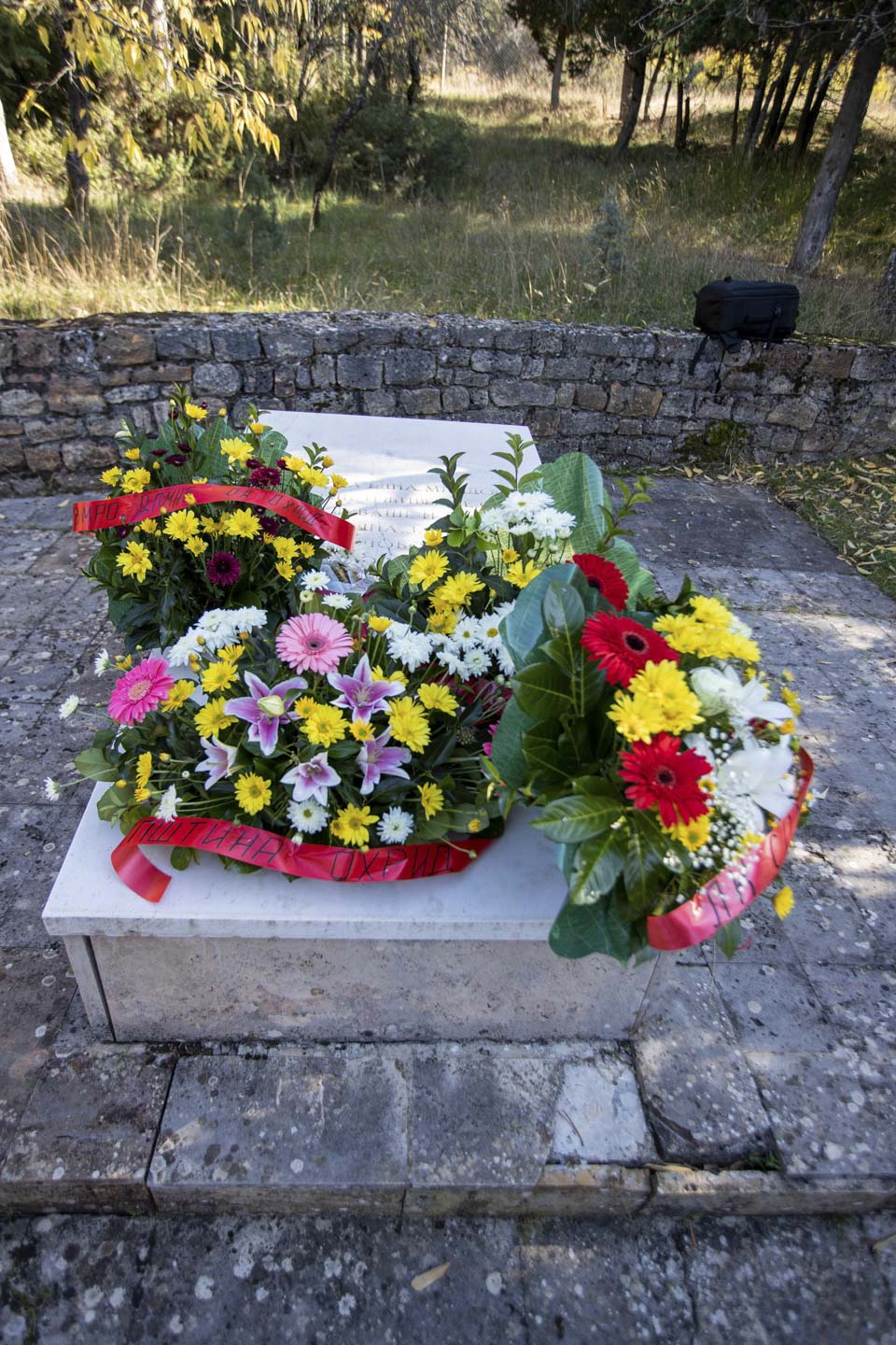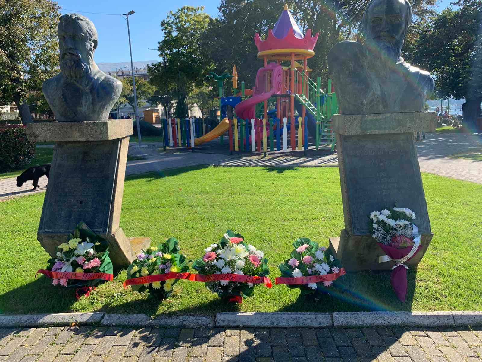 Делегација на Општина Охрид предводена од градоначалникот Константин Георгиески по повод 11 Октомври- Денот на Народното востание , положи свежо цвеќе пред спомен обележјата на паднатите борци во градски парк,...