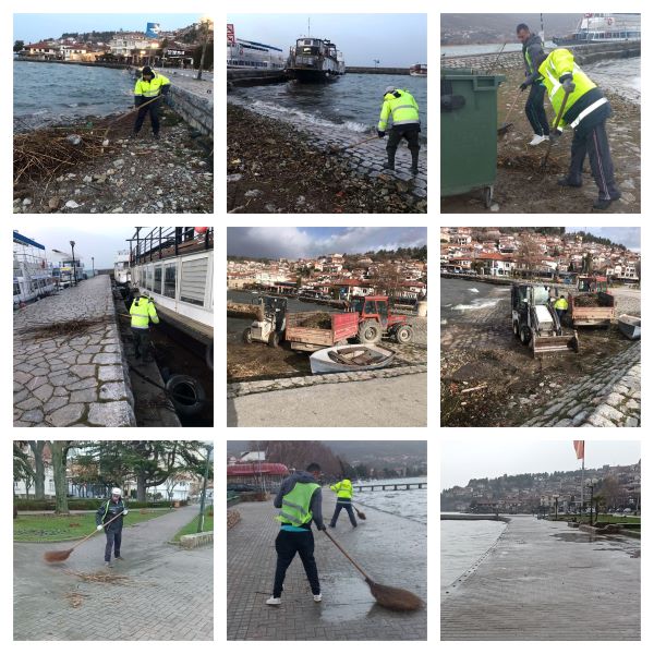 Екипите на ЈП Охридски Комуналец Охрид денес извршија активности за расчистување на езерското крајбрежје од расфрлан отпад, поткастрување на дрворедите во градското подрачје а се помагаше и со носење земја...