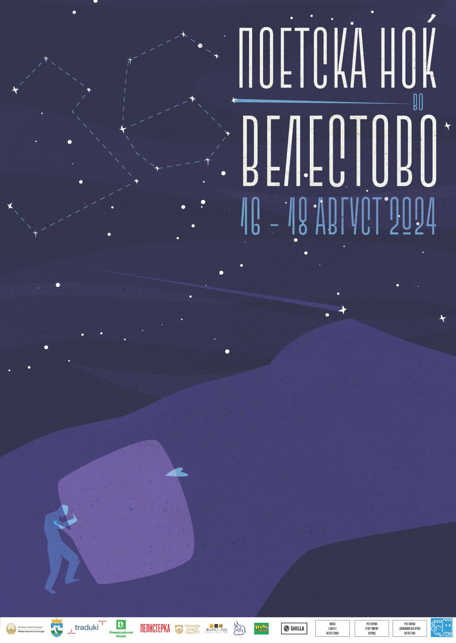 Програма: Прочитајте ја брошурата на фестивалот на следниот линк: Velestovo Poetry Night 37 Носител: Здружение “Поетска ноќ Велестово”, Комисија за одбележување празници и манифестации и доделувања награди и признанија. ...